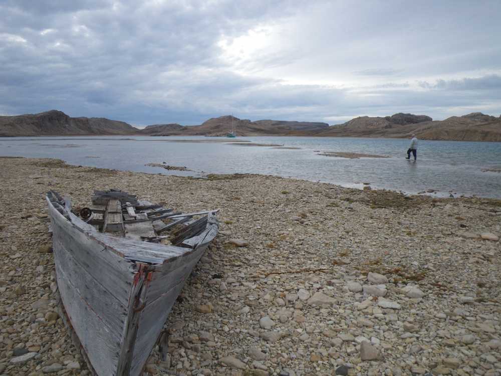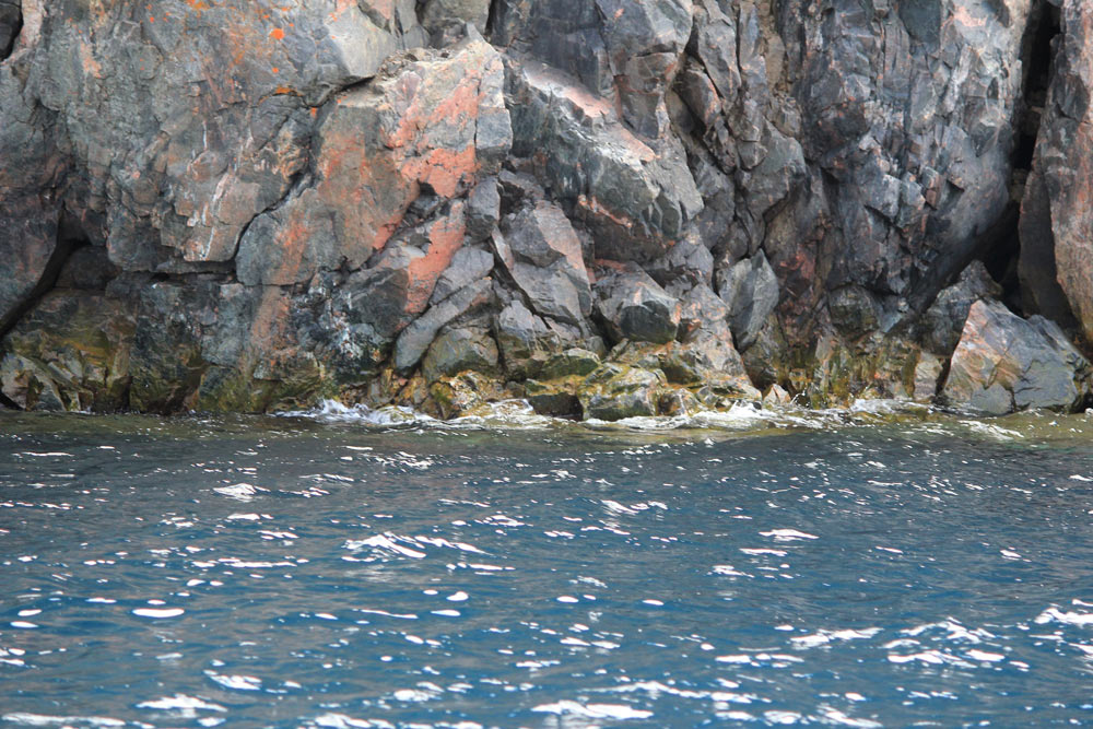 Georges et Guy reviennent bredouilles de la pêche et nous levons l’ancre pour une navigation d’environ 25 milles en direction de Mitrofania, un village abandonné où nous mouillerons dans le port naturel formé par une petite baie encastrée entre les falaises.
