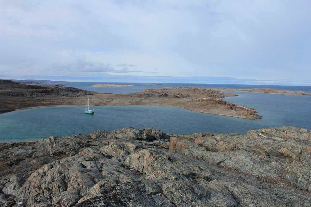 Nous ferons escale une quinzaine de milles avant l’Anse aux Meadows à Cook’s Harbour, port de pêche sympathique. L’entrée du port est magnifique et apparemment difficile : on voit un bateau de pêche échoué sur les rochers (nous apprendrons que le capitaine s’était endormi et a fait côte il y a 2 jours). La carte n’est pas précise, une erreur d’environ 200 mètres déporte notre route sur la carte électronique. Nous sommes vigilants et entrons dans un port de pêche qui nous accueillera à son quai !
